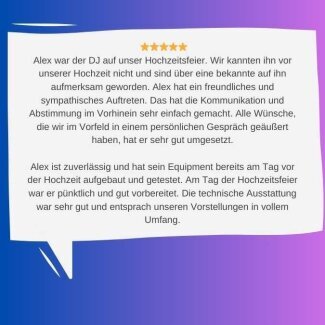 Sie können mich als Hochzeit DJ buchen und zwischen allen erdenklichen musikalischen Genres wählen.